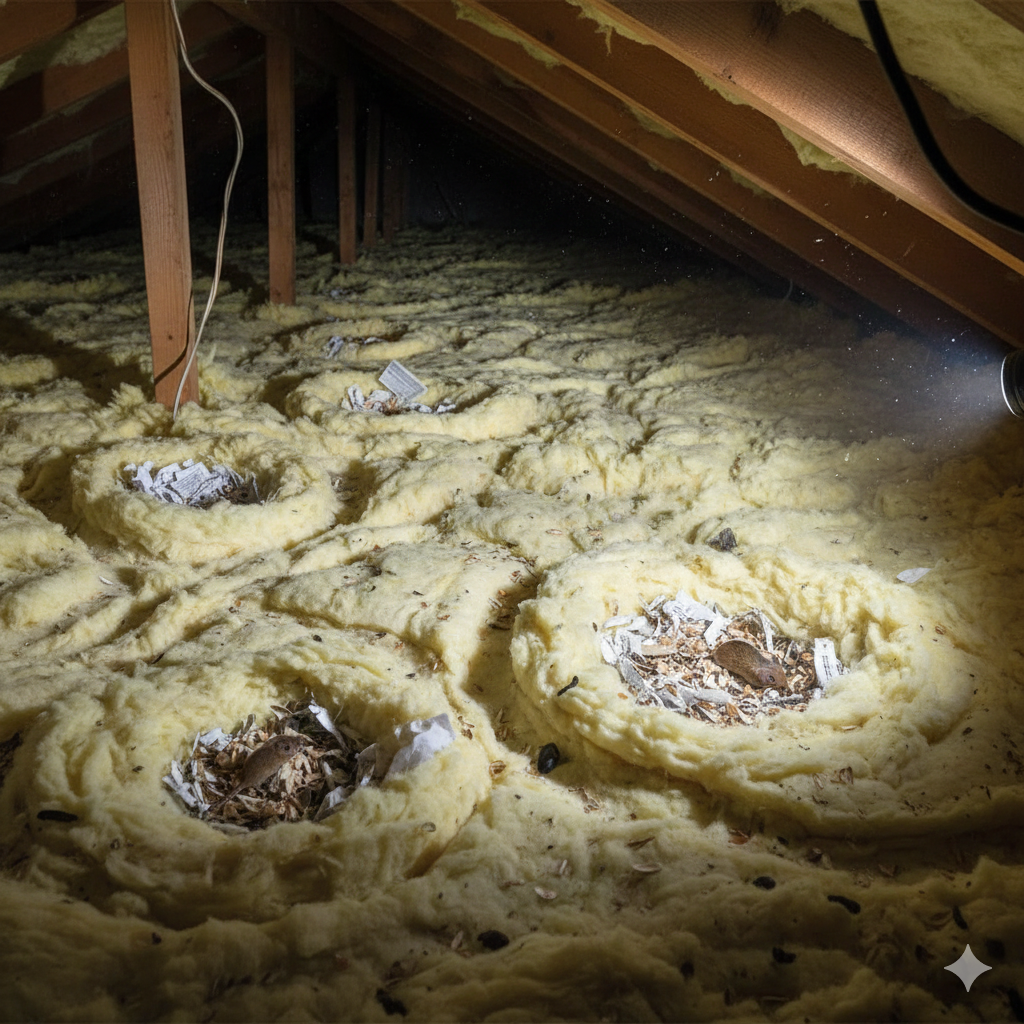 - Damaged insulation in attics, crawlspaces, and wall voids